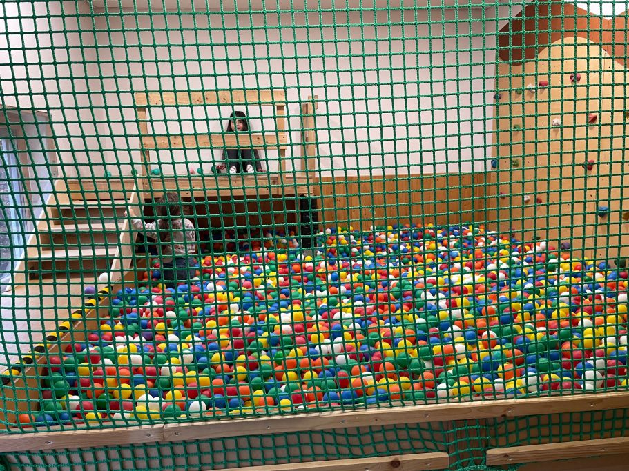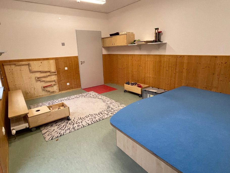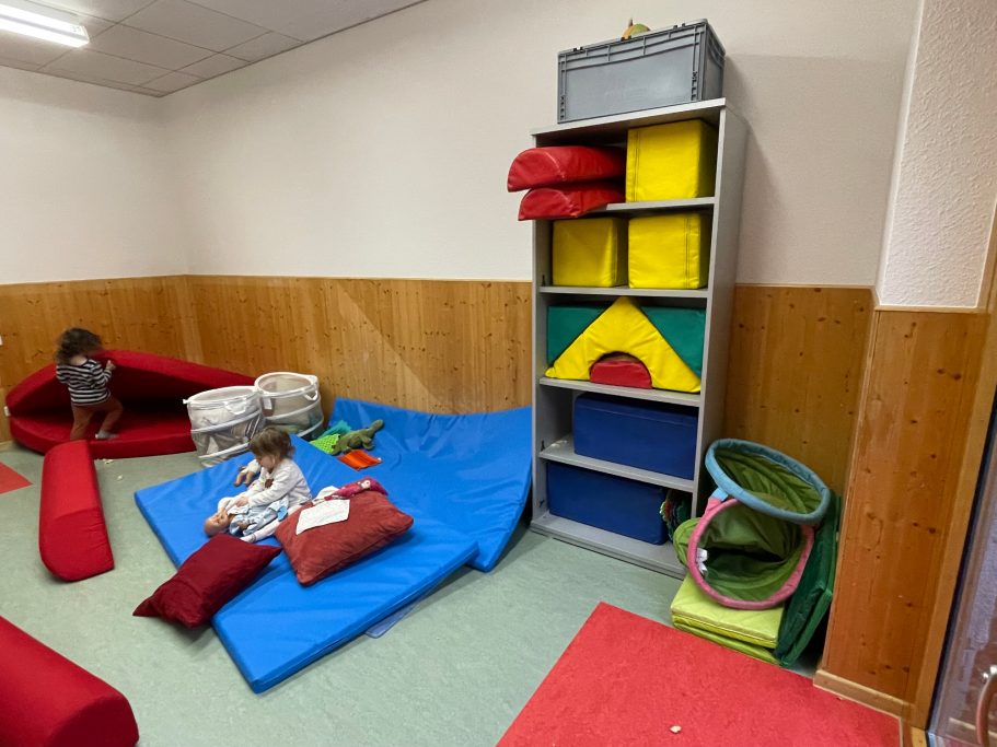 In einem Bällebad, einem Bauraum und einem Bewegungsraum haben die Kinder die Möglichkeit, gruppenübergreifend neue Kontakte zu knüpfen und miteinander zu spielen. Von unserer Hausküche werden wir täglich frisch bekocht und ein großer Turnraum wird für wöchentliche Turnangebote genutzt.